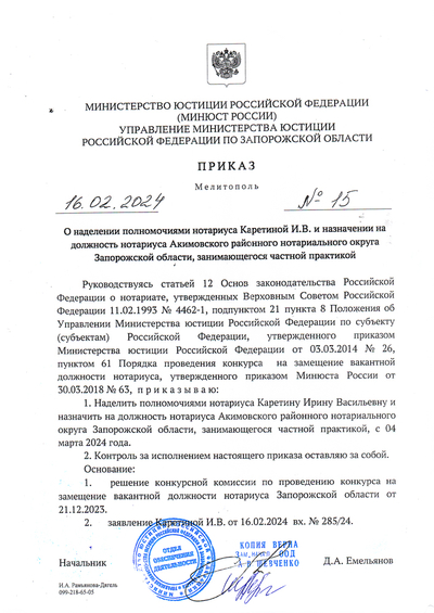 Уважаемые клиенты, вызов нотариуса для совершения нотариальных действий вне помещения нотариальной конторы производится по предварительной записи по тел.: +79902446868
