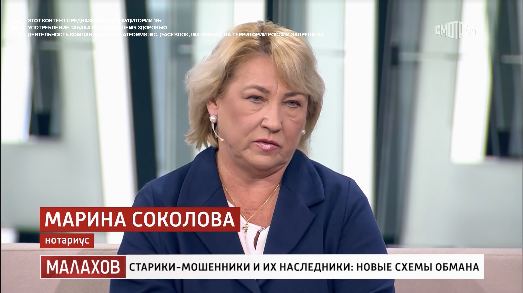 Как не остаться без жилья и без денег? В программе «Малахов» на канале «Россия 1» показали истории добросовестных покупателей квартир, сделки которых были оспорены якобы введенными в заблуждение продавцами. Главный вывод программы — от таких историй защитит нотариальная форма сделки. Экспертом программы выступила нотариус г. Москвы Марина Соколова.